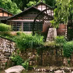 Visitors stroll along the wooden boardwalk, their sachets and tassels fluttering like colorful butterflies. Some squat by the river steps, scooping up the cool water to cleanse the leaves of rice dumplings. The deep green leaves against the reddish-brown rocks resemble a meticulous painting sprung to life from a landscape scroll.