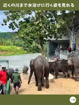 It is a popular spot for both locals and tourists, offering a rare opportunity to interact with the elephants and observe their lives up close. The best time to visit is during bathing time, when you can see the elephants leaving the facility, crossing the road, and going to the nearby river to bathe! This is a sight you can't see in Japan, and it's sure to be an exciting and wonderful memory! #OverseasTravelTactics