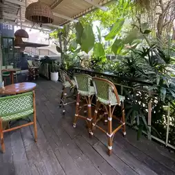 It's a very comfortable and cozy spot. It can suit a hangout or meet up too with friends. You can work, the Internet sometimes falls off but not bad at all. There is an air conditioner, indoors and it's nice during the day. A good place to come for breakfast, have a quiet and tasty meal.