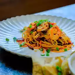A creative fusion dish featuring perfectly cooked spaghetti coated in a spicy and flavorful Laoganma chili oil sauce. It’s topped with shrimp, crispy garlic, and freshly chopped scallions for an added burst of flavor. While the sauce packed a punch, the prawns were unfortunately not the freshest and felt a little too soft.
