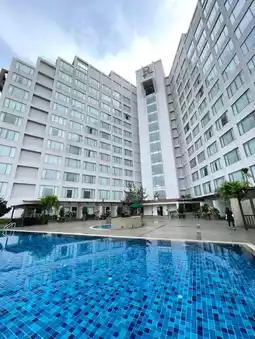 Great amenities & location: Guests enjoy the on-site pool, modern gym, executive lounge access, free parking, and convenient spot near night markets and eateries .
