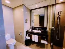 The room was spacious, clean, and beautifully designed with modern furnishings. The bed was extremely comfortable, and the large windows offered a nice view of the city. The bathroom was spotless and well-equipped with all the amenities I needed.