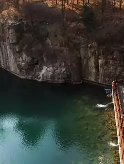 Pocheon Art Valley is located north of Seoul and offers a beautiful view of an emerald-green lake and granite cliffs.