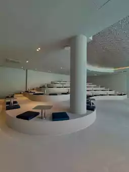 The waterfalls visible from inside and outside the second floor are impressive photo spots,