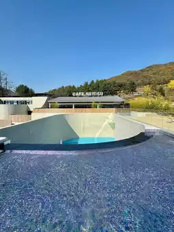 is decorated with natural materials such as stones, water, and trees, allowing you to enjoy food and drinks with nature.