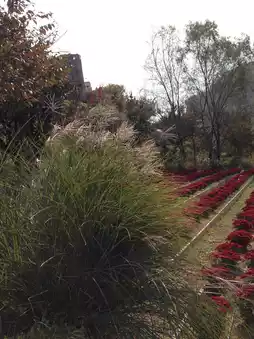 The maple trees have turned red, adding to the seasonal charm. There is also a greenhouse selling herb pots and a shop offering various herb products. 🦋