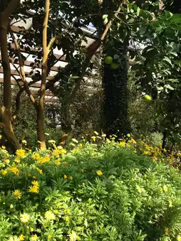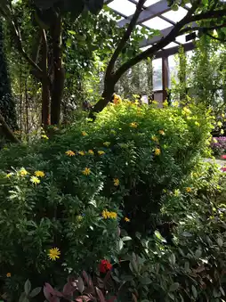 Inside the greenhouse, you can find a variety of flowers and plants, making it a refreshing and enjoyable experience to walk around. 🌲