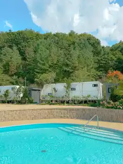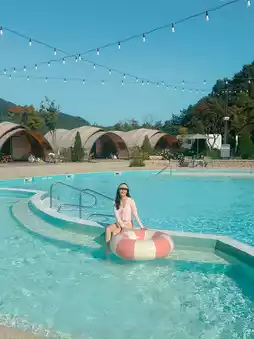 This place features a swimming pool nestled in the forest, allowing you to experience both the woods and the sea at the same time!
