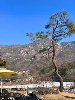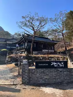 Gabigae, located not far from the Pocheon Sanjeongho Lake Sangdong Parking Lot, is a Hanok cafe that boasts a view of Myeongseongsan Cliff and Sanjeongho Lake💕