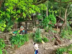This coffee shop is in the pristine jungle style, the restaurant is mainly designed with stone blocks and wood, decorated with very unique wooden lamps and swings are very special very hipster and very hippie Take pictures πΈ check-in. When the sun comes in at three or four in the afternoon, you can see the beautiful "tangerine sea". Some customers in the restaurant are wearing swimsuits.