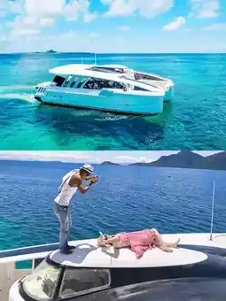 💡 Highlights: An island-hopping route with hidden surprises. The yacht visits Warship Island during off-peak times, unlocking the pristine Drag Tail Beach with no footprints, paired with Jellyfish Sea, creating Maldives-like scenes!
