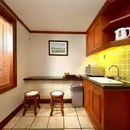 Entering the room, I started to feel excited about the private pool, size of the spacious room and the queen size bed with 2 units. The back is also spacious and complete with kitchennete facilities.