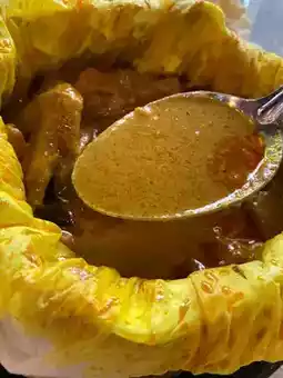 But the thing is hugeâno way one person can finish it. The curryâs loaded with chunky potatoes, and the chicken is juicy, not dry at all.