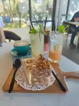 I ordered a creamy banana cheesecake and a crunchy caramel nut tart—both were delicious! The drinks were just as impressive. I had a lime soda that looked pretty and tasted super refreshing. It’s a great spot to escape the heat, sip something cool, and just enjoy the sound of the waves. I’d totally recommend it for solo chill time or a catch-up with friends.