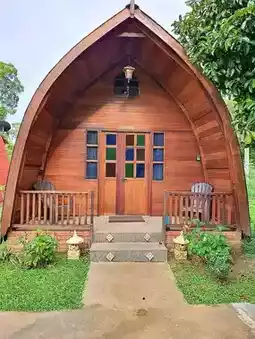 Guests love the rumah lumbung (rice barn) design—wooden, igloo-shaped chalets surrounded by lush greenery and fruit trees, giving a tranquil, village‑like atmosphere .