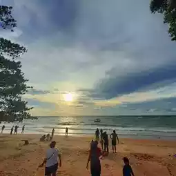It was 630pm in the evening and it was so cooling, the wind was blowing at us and it was a nice weather to get our feet soaked in the water. We decided to take a few photos and play with the salty water, splashing around like kids. The sand was not too rough and sea water is a bit greenish but clean enough to have a swim.
