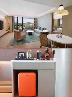 🛏️Rooms: All room types have open-air balconies with views of Shunshan. I stayed in an executive king room, with a view right outside the window. The layout is very similar to the Sanya EDITION! The 42-square-meter space is super spacious, with a log color scheme + sloping roof, making it lazy and comfortable. The bathroom hardware is Hansgrohe, and there is also a PG bathtub and Dyson hair dryer. This configuration directly won me over! The first round of the mini bar is free, and the capsule coffee machine and direct drinking water machine are also super thoughtful~