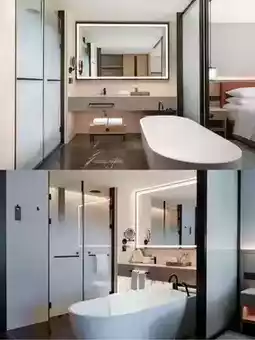 🌸Surroundings: The architecture is in the style of traditional Jiangnan residences, with black, white, and gray tones, plus bridges, flowing water, green plants, and rockeries, creating a strong atmosphere of ink wash Jiangnan. The fireplace in the lobby bar is super stylish, with a 100% photo op rate!