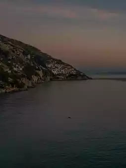 The shadows of the mountains stretch long over the sea, and the breeze blows warmly. On the sand, children chase the last waves, while lovers hold each other's hands tightly.