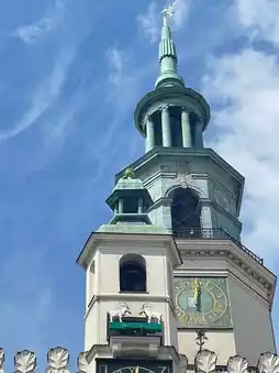 🧡 The Town Hall (Ratusz) on the square is a landmark, every day at 12 noon there will be two mechanical goats (symbol of Poznan) appearing from the bell tower to tell the time.