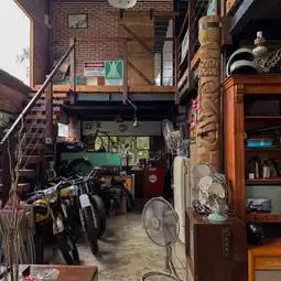 This is a beautifully designed cafe located in Prachinburi. The cafe is a renovated house with a loft-style design, decorated with vintage items and surrounded by lush greenery, creating a refreshing and serene atmosphere. The cafe offers a variety of drinks, including coffee, non-coffee options, and bakery treats.