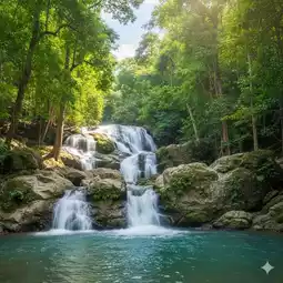 A small waterfall hidden in the Thap Lan forest 🏞️, although not large. But it's crystal clear and cool, and the atmosphere is peaceful. Perfect for soaking your feet, listening to the sound of flowing water, and unwinding from the hustle and bustle. 💆♀️🍃 If you love simple, natural surroundings, you must visit!