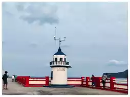 📌 The bridge stands out with its red bridge, a long path leading down to the sea. 📸 The atmosphere in the evening, when the sun is setting and the wind is calm, is very suitable for walking, filled with locals and tourists coming to admire the beauty of the Prachuap sea.