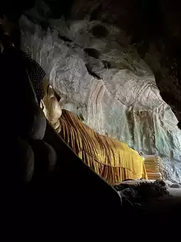 There is a second statue for reclining Buddha the deep in the cave, along with some smaller statues of monks.