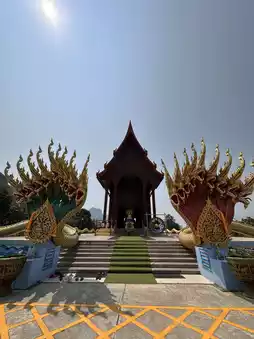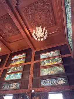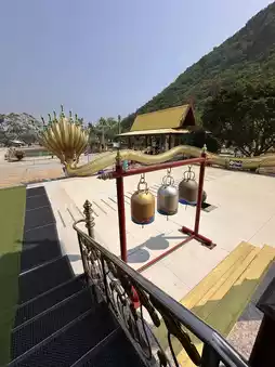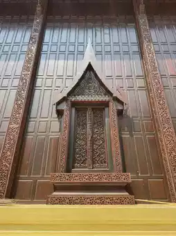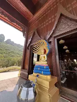I recently visited Wat Ao Noi near Prachuap town, and it was such a peaceful little gem. The temple is known for its stunning woodwork—everywhere you look, there are intricate carvings on the doors, pillars, and even the ceiling. The craftsmanship is incredible, with so much detail in the Buddhist motifs and floral patterns.