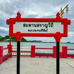 📍Saranwithi Bridge is a red bridge located in Mueang Prachuap Khiri Khan District. The bridge is long and extends into the middle of the sea. It is made entirely of cement. There is an area for walking and relaxing.
