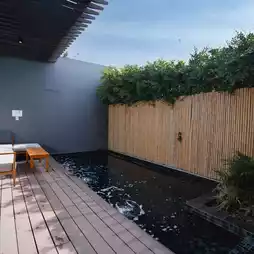 This is an accommodation that must be given credit for value because the starting price is only 300 baht, but what you get is worth more than the price, starting from the view of the swimming pool by the sea, looking out to see Khao Takiab, luxurious decorations, the highlight corner is the walkway from the room to the sea that everyone who comes must take a photo to check in. This is not a very large accommodation with 36 rooms, quite peaceful, private. The room we stayed in was room V2, a villa by the sea. Walk out of the room just a few steps to the pool and the sea. The room is very spacious. Inside the room, there is a private pool and a balcony to go up and see the Hua Hin sea at 180 degrees.