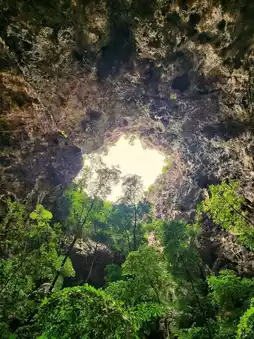 Once you’re inside, it’s like... wow. The roof of the cave is partly open, so sunlight pours in and lights up the temple in the coolest way. Super peaceful, super photogenic, and honestly a bit magical.