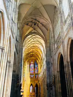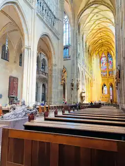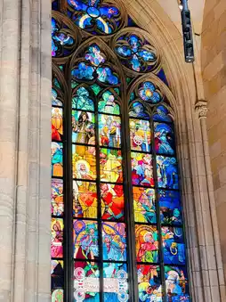 [Prague Castle Highlights]-----------------------------❶ St. Vitus Cathedral The largest historic church in Prague Castle, with its amazing stained glass! The Gothic building is fascinating🥰The ceiling is 34m high! There is also Mucha's stained glass 👀💓