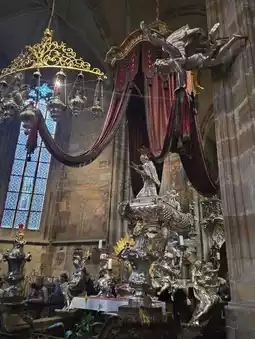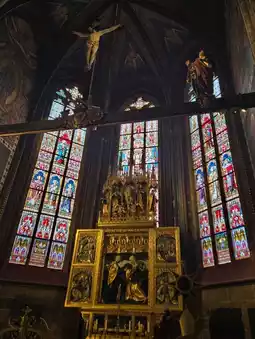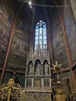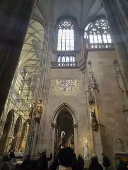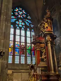 Absolutely breathtaking! It took over 500 years to complete. The sheer number of stained glass windows is overwhelming. The stained glass designed by Mucha is particularly famous. The grand pipe organ and the intricate decorations are also stunning. Since we visited on a cloudy morning, the slightly dim lighting added to the solemn and majestic atmosphere. Wow, I’m so glad we came here!