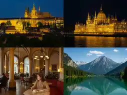 After sunset, as lights begin to illuminate the Vltava River, Prague transforms into a true 'City of Lights.' The distant view of Prague Castle and St. Vitus Cathedral, bathed in golden light atop the hill, appears almost as if they are floating serenely. Walking along the bridge, surrounded by the statues of saints, evokes the feeling of strolling through a medieval night.