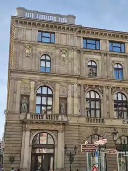 A harmonious blend of historic buildings and bustling streets, with European brands and local designers. At the end of the square, the Prague National Museum offers a fusion of culture and history. 🏛️✨