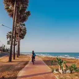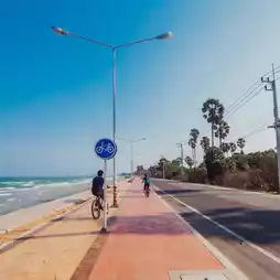 For those who come to Pranburi, we recommend that in the evening, try cycling along the Pranburi beach because there is a bicycle lane here, along with breathing in the fresh air and seeing the sea. We can cycle all the way to Khao Tao Beach.