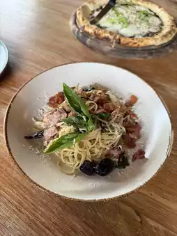 The spaghetti, pizza, and salad were all delicious. 😃