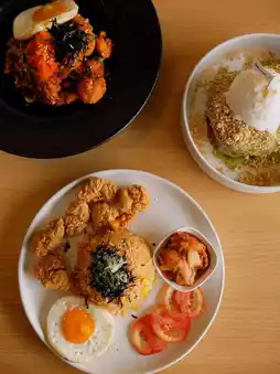 1. Korean Fried Rice with Popcorn Chicken: Spicy and well-balanced flavor