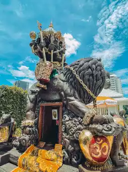 Take you to worship Lord Ganesha at a secret location at the Phoenix Mall (Phanthip Pratunam) on the 5th floor. Walk up the stairs to the rooftop on the 6th floor. Lord Ganesha in the form of a king, the only one in Bangkok. This form is a form with 5 heads sitting on a lion, carved from golden teak wood that is hundreds of years old. It took 8 months to carve. #Bangkok attractions #trip #Must-see for those who worship #Motel