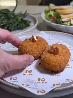 Fried crispy outside, 𥚃Creamy inside, Iberian ham and salad dressing on the potato pancakes, the taste is savory enough to be delicious