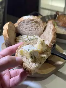 Hot and semi-melted brie cheese, honey and garlic, with toasted crispy and slightly smoky sourdough bread, cheese lovers must understand how delicious 🧀