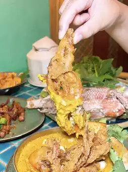 The decoration uses lake green as a background, with rattan furniture and murals, very Thai style 🇹🇭 Thai chef team specializes in Yishan area traditional cuisine, such as Northern Thai curry gold noodles, charcoal salt grilled fish, etc., very Thai cuisine iconic flavor