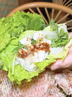 Pre-order, limited quantity per day, salt-grilled fish is hot and large enough, tender fish, and can be paired with lettuce, vermicelli, onion strips, nine-story pagoda, plus two sauces, authentic Thai Yishan flavor