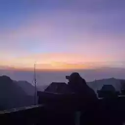 * At 3:30 AM, arrive near Mount Prau, take a moment to rest at a coffee shop, and enjoy hot coffee and instant noodles. It's quite cold, so prepare warm clothing.