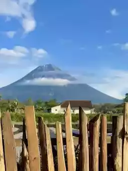 Enjoy breakfast with a direct view of the volcano! Occasionally, the volcano emits puffs of smoke 💨, adding to the unique experience.