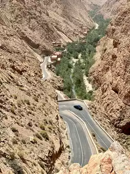 🌄 Dramatic Scenery: Marvel at the rugged cliffs, dramatic rock formations, and lush valley below as you navigate this winding road. The contrast between the arid rocks and the greenery of the Dades River is mesmerizing.