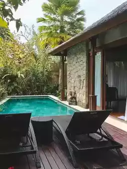 The rooms are decorated nicely - they feel luxurious yet authentic. The high ceiling made it feel even more spacious as did the big window doors that open out to the private pool deck area. The private pool area was amazing. The water itself was a little too cold to be honest, but cooling off in your own pool on a hot Bali day is nothing to complain about.