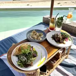 Tropical temptation beach club is a gorgeous magical spot on Melasti beach, with two different pool areas. The main one is an Infinity pool that has a jacuzzi inside! (The little extra detail that makes all the difference). The vibe is incredible and the view is breathtaking. They have a variety of different seating areas and private pools, hammocks. During Sundays, they also have a foam party! The staff are very hospitable as well.