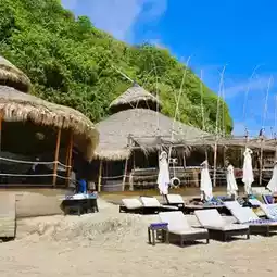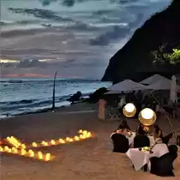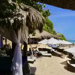 Karma Kandara is a famous hotel in Bali. It's great if you can stay in it and spend your holidays. But even if you are staying at another hotel, you can spend the day (from morning to evening) at the hotel for a small fee. You can take a sun lounger, order something to eat (this is included in the ticket price for the day). The beach in this part is very clean, the water is beautiful, turquoise, you can swim, walk along the coast and even play volleyball (there is a net). You can also walk around the hotel with villas, go to the restaurant. From there, beautiful views of the Indian Ocean open up from above. It is better to wait until the evening, then the lights on the beach light up, music and you can dance in the open-air bar.